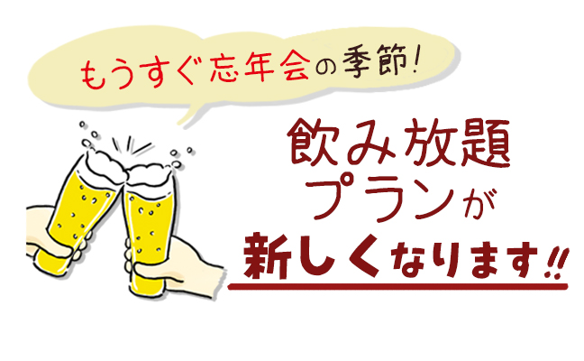 10月14日に、全・飲み放題コースの内容が新しくなります。ご来店日が10月14日以降のご予約については、下記の新コースにてご提供させていただきます。(一部の商品が変更になります) 4000円コース(税込)詳細 リーズナブルに、気軽に飲み放題を楽しむな... -